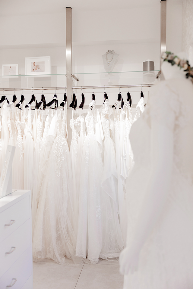 In der Boutique erwartet dich eine exklusive Braut-Etage mit Wohlfühlatmosphäre und einem eigenen Atelier.