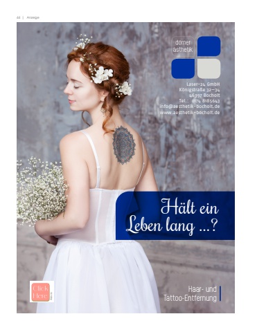 44 | AnzeigeHaar- undTattoo-EntfernungLaser-24 GmbH K%u00f6nigstra%u00dfe 32%u20143446397 BocholtTel.: 0174 8185643info@aesthetik-bocholt.dewww.aesthetik-bocholt.deH%u00e4lt ein Leben lang ...?Website