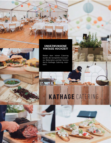 UNGEZWUNGENE VINTAGE HOCHZEIT Neben dem reinen Catering wurde die komplette Konzepti- on, Dekoration und der Service durch Kathage Catering reali- siert.