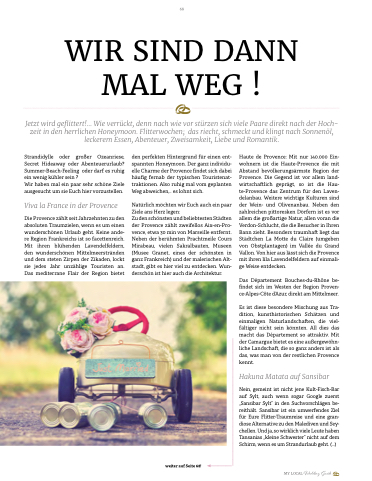 den perfekten Hintergrund für einen ent- spannten Honeymoon. Der ganz individu- elle Charme der Provence findet sich dabei häufig fernab der typischen Touristenat- traktionen. Also ruhig mal vom geplanten Weg abweichen,.. es lohnt sich.